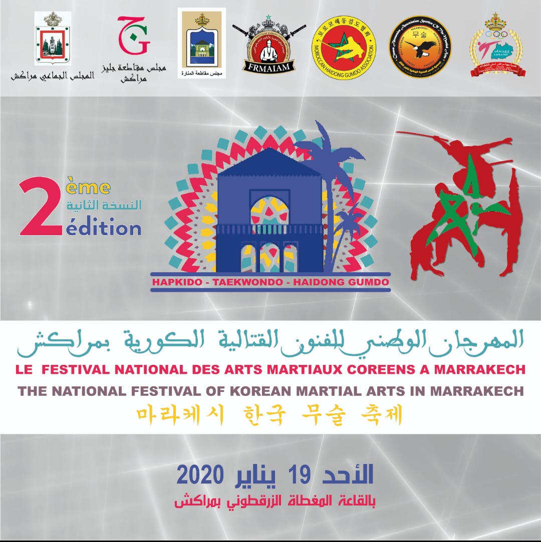 بدعم من المجلس الجماعي لمراكش ومجلس مقاطعة المنارة تنظم -جمعية شمس المسيرة الرياضية لفنون القتال الكورية- الدورة الثانية لفعاليات المهرجان الوطني للفنون القتالية الكورية