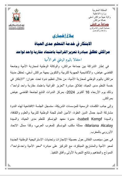 مراكش تطلق مبادرة تعزيز القرائية بإعتماد مقاربة واحد لواحد هيئة التحرير 16 أكتوبر، 2024 اضف تعليق 2024-10-16 هيئة التحرير شاركها فسبوك تويتر قوقل بلوس LinkedIn