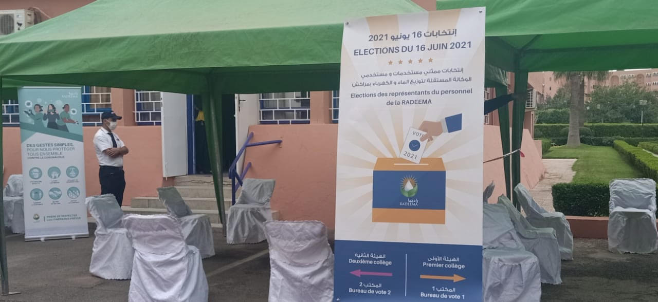 تكريسا منها للخيار الديمقراطي كحق دستوري وترسيخا لثقافة الحوار والتشاور من اجل النهوض بالعلاقات المهنية وإقرار السلم الاجتماعي، نظمت الوكالة المستقلة لتوزيع الماء والكهرباء بمراكش (راديما) انتخابات مندوبي مستخدميها وذلك يوم الأربعاء 16 يونيو 2021 بالمقر العام للوكالة.