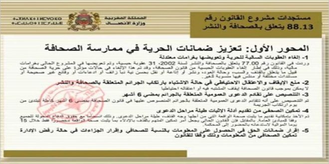 مشروع القانون 77-71 القاضي بتغيير وتتميم القانون رقم 13-88 المتعلق بالصحافة والنشر