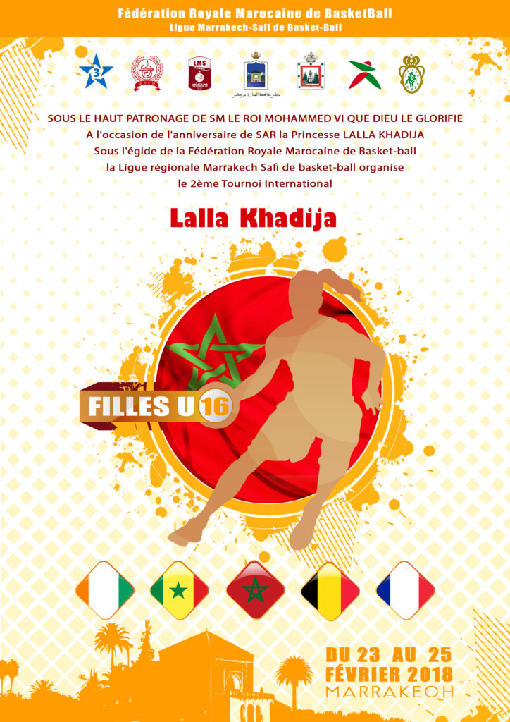 تحت الرعاية السامية لصاحب الجلالة الملك محمد السادس أعزه الله ونصره، وبمناسبة الذكرى الحادية عشرة لميلاد صاحبة السمو الملكي الأميرة الجليلة للا خديجة، تنظم عصبة مراكش آسفي وتحت إشراف الجامعة الملكية المغربية لكرة السلة الدورة الثانية للدوري الدولي للا خديجة لفئة أقل من 16 سنة بنات وذلك بمدينة مراكش خلال الفترة ما بين 23 و25 فبراير 2018.