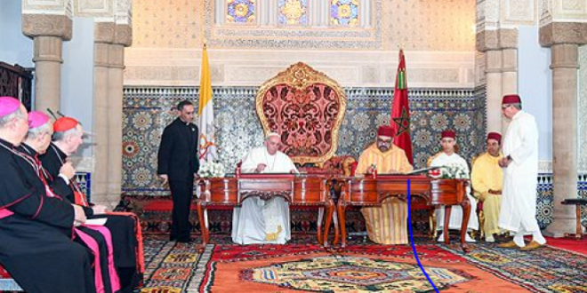 وجاء في البيان الختامي للمنتدى، الذي انعقد اليوم الثلاثاء بموسكو ، “نشيد بدور لجنة القدس التي يترأسها صاحب الجلالة الملك محمد السادس، وبتوقيع صاحب الجلالة الملك محمد السادس وقداسة البابا فرانسيس على ”نداء القدس” ،الذي يهدف إلى الحفاظ والنهوض بالطابع الخاص للقدس كمدينة توحيدية وتأثيرها الروحي وهويتها المتفردة”.