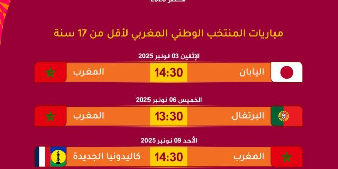 الرئيسية » 24 ساعة » مونديال (قطر 2025 ) لأقل من 17 سنة .. برنامج مباريات المنتخب المغربي في دور المجموعات