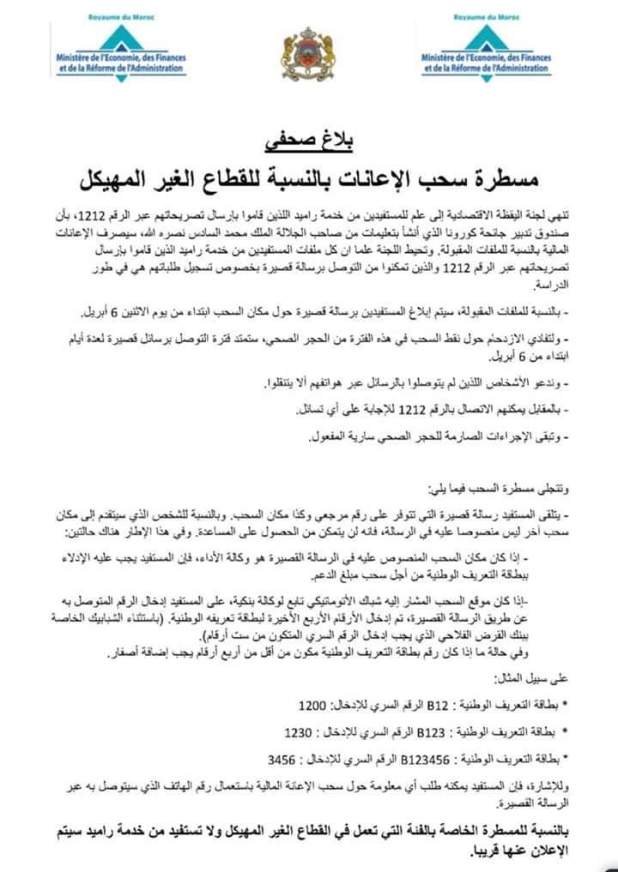 هذه هي مسطرة سحب الإعانات بالنسبة للقطاع غير المهيكل هيئة التحرير 4 أبريل، 2020 اضف تعليق سحب الإعانات 2020-04-04 هيئة التحرير شاركها فسبوك تويتر قوقل بلوس LinkedIn