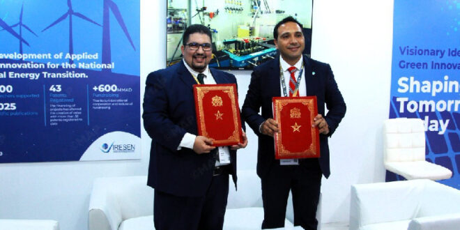 وقع معهد البحث في الطاقة الشمسية والطاقات الجديدة والمعهد العالمي للنمو الأخضر، اتفاق تعاون في مجال الهيدروجين الأخضر وذلك على هامش أشغال الدورة الخامسة للقمة العالمية للهيدروجين الأخضر وتطبيقاته (Power-to-X 2025) المنعقدة بمراكش يومي 1 و2 أكتوبر الجاري.