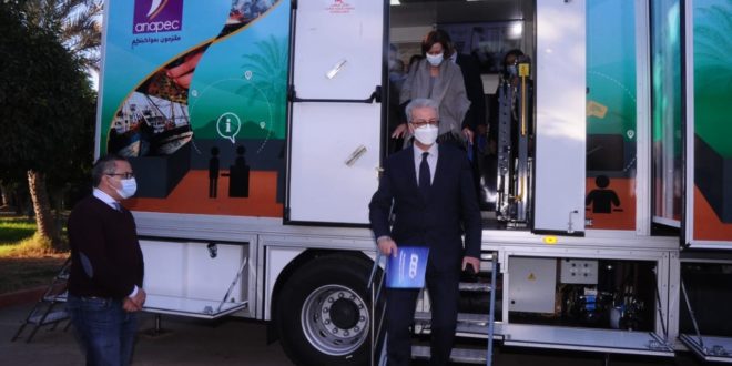 كما قام الوالي رفقة بعثة البنك الدولي ورؤساء المصالح المعنية بمعاينة وحدتين متنقلتين لتحسيس الشباب على ريادة الأعمال ستوظف في جهود التحسيس والمواكبة بمجموع تراب الجهة.
