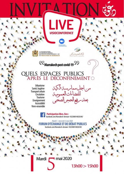تحت شعار “من أجل ممارسة ذكية ما بعد رفع الحجر الصحي” و في إطار تبادل التصورات والمقترحات حول “مراكش ما بعد جائحة كوفيد19” من المنتظر أن يترأس  السيد والي جهة مراكش أسفي زوال غد الثلاثاء عبر منصة تفاعلية مباشرة  أول لقاء للتبادل والنقاش العمومي حول التصورات العملية لتدبير مرحلة ما بعد الحجر الصحي بمدينة مراكش وذلك  عبر تقنية زوم.