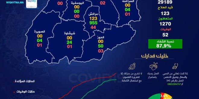 جهة مراكش أسفي – 10 إصابات جديدة ترفع العدد الإجمالي إلى 1447 حالة مؤكدة