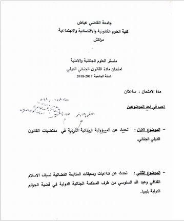 وذكرت المجلة أن رواد مواقع التواصل الاجتماعي وعددا من المهتمين بالعلوم القانونية تداولوا أسئلة امتحان جامعي وضعت أمام طلبة “ماستر العلوم الجنائية والأمنية” في كلية الحقوق بمراكش، بينها سؤال عن معوقات ملاحقة سيف الإسلام القذافي وعبد الله السنوسي رئيس الاستخبارات الليبية في عهد القذافي من قبل المحكمة الجنائية الدولية.