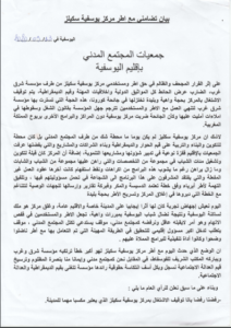 أصدرت جمعيات المجتمع المدني بإقليم اليوسفية بيانا ناريا تؤازر وتساند فيه أطر مؤسسة سكليز اليوسفية الذين تم طردهم وإغلاق المركز.