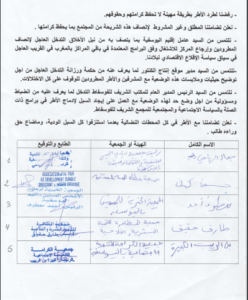 و التمست من عامل الاقليم التدخل العاجل لانصاف هذه الفئة من المجتمع وإرجاع المطرودين و فتح المركز للاشتعال من جديد،كما هو الحال في باقي المدن المغربية.