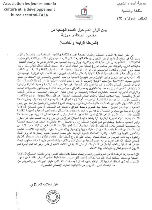 جمعية أصداء الشباب تصدر بيانا للرأي العام حول إقصاء الجمعية من مخيمي الودكة و الحوزية هيئة التحرير 21 أغسطس، 2022 اضف تعليق 2022-08-21 هيئة التحرير شاركها فسبوك تويتر قوقل بلوس LinkedIn