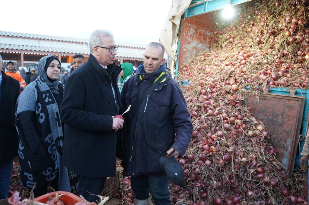 السيد والي جهة مراكش اسفي في زيارة لسوق الجملة للإطلاع على وضعية التموين من الخضر والفواكه