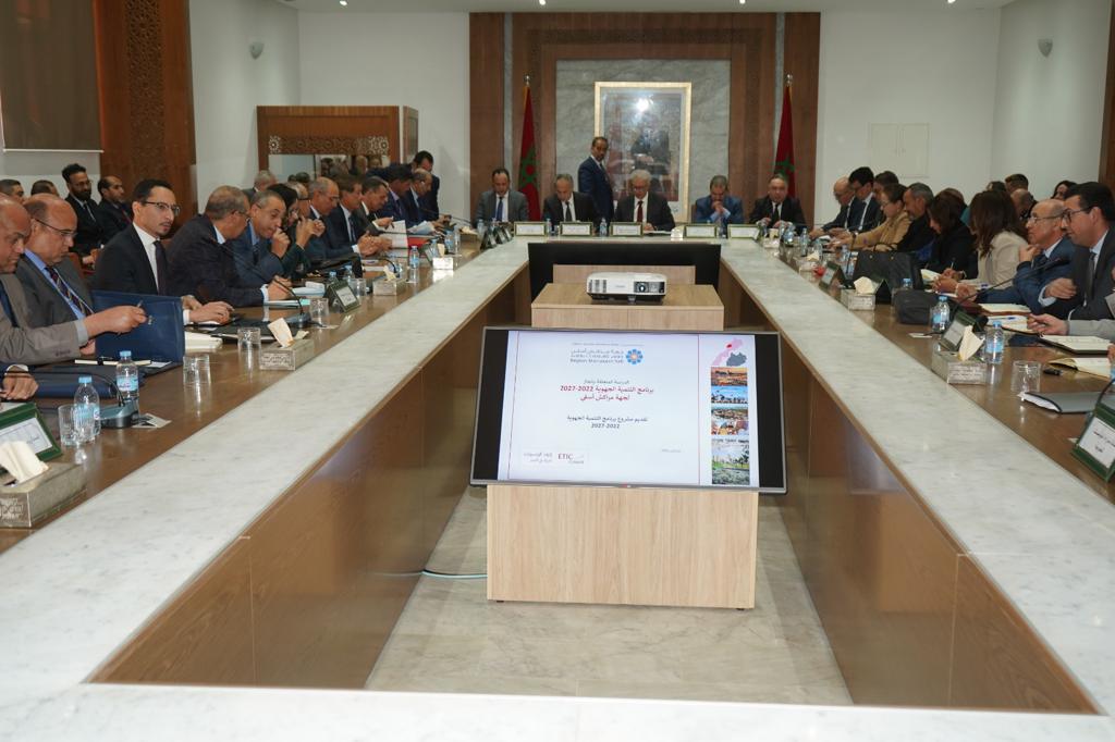 من جهته أكد السيد رئيس الجهة على أنه تم وضع الأولويات الكبرى ضمن مشروع البرنامج وفي مقدمتها إشكالية تدبير المياه، وذلك من خلال اعتماد برامج متكاملة لإدارة الموارد المائية بالجهة، تعميم ربط الجماعات بشبكة توزيع الماء الصالح للشرب، بناء سدود تلية، وتنفيذ مشاريع إعادة استخدام مياه الصرف الصحي.