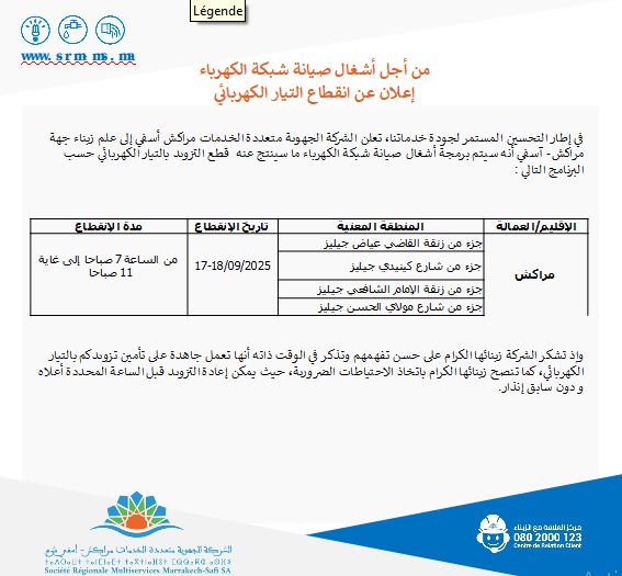 من أجل صيانة شبكة الكهرباء.. إنقطاع مرتقب للتيار الكهربائي عن بعض الأحياء بجيليز هيئة التحرير 12 سبتمبر، 2025 اضف تعليق 2025-09-12 هيئة التحرير شاركها فسبوك تويتر قوقل بلوس LinkedIn