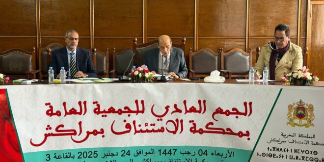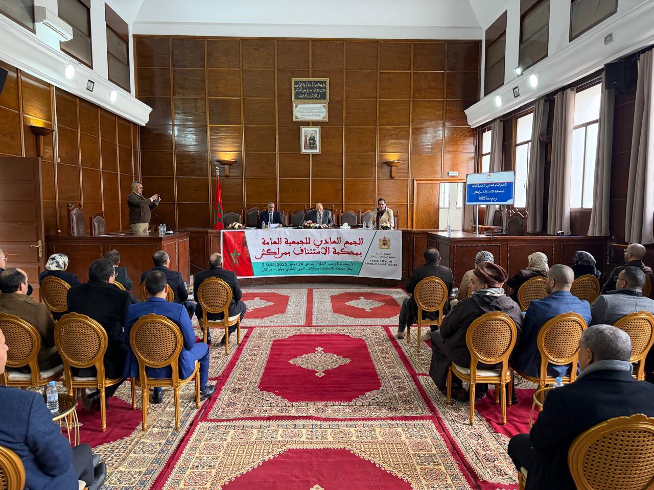 عقدت محكمة الاستئناف بمراكش، يوم الأربعاء 25 دجنبر 2025، جمعها العام السنوي، وذلك وفقًا لمقتضيات المادة 33 من قانون التنظيم القضائي، خصص لتقييم حصيلة العمل القضائي برسم سنة 2025 واستشراف آفاق وبرنامج العمل القضائي والإداري لسنة 2026.