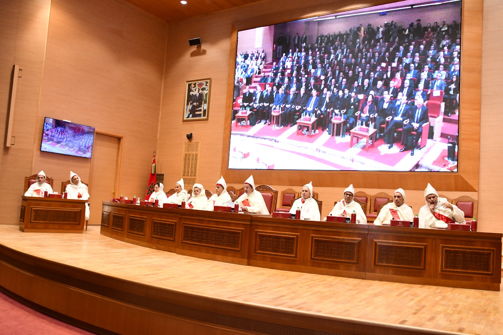 بإذن من جلالة الملك محمد السادس نصره الله، وتطبيقاً للمادة الثامنة من القانون رقم 38.15 المتعلق بالتنظيم القضائي للمملكة، تعقد محكمة النقض هذه الجلسة الرسمية لافتتاح السنة القضائية 2026. وهي مُنَاسبَة سانحةٌ للسلطة القضائية لتتقدم بالشكر والامتنان، وبآيات الولاء والعرفان، لرئيسها جلالة الملك حفظه الله، لأجل حمايته لاستقلالها، ودعمه لجهودها المتواصلة في تنزيل البرامج الإصلاحية، وعناية جلالته الموصولة بالقضاة وكافة المنتسبين لمنظومة العدالة.