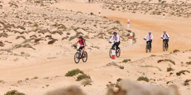 فوق الكثبان الرملية لمدينة الداخلة، احتدمت المنافسة خلال اليوم الثاني من الدورة الـ 12 للحاق “صحراوية”، حيث لم تجد المشاركات بدا من استجماع قواهن البدنية، ليحولن بذلك كل عقبة إلى درس حقيقي في المثابرة والتآزر. وفي هذه المرحلة من التحدي، استهلت المشاركات المنافسات المبرمجة بسباق للدراجات الهوائية على مسافة 3 كيلومترات من الرمال، للمرور بعد ذلك بمسارات الصعود بطول كيلومترين ثم عبور تضاريس متنوعة لمسافة 7.7 كيلومترات وصولا إلى نقطة التزود (الكيلومتر 12.7).
