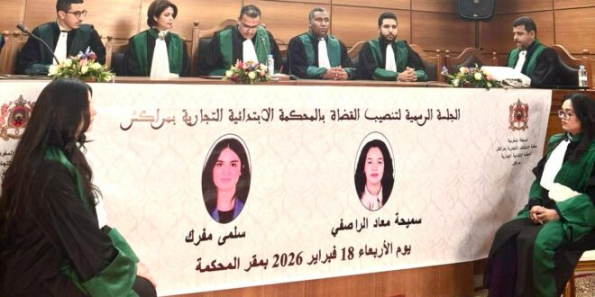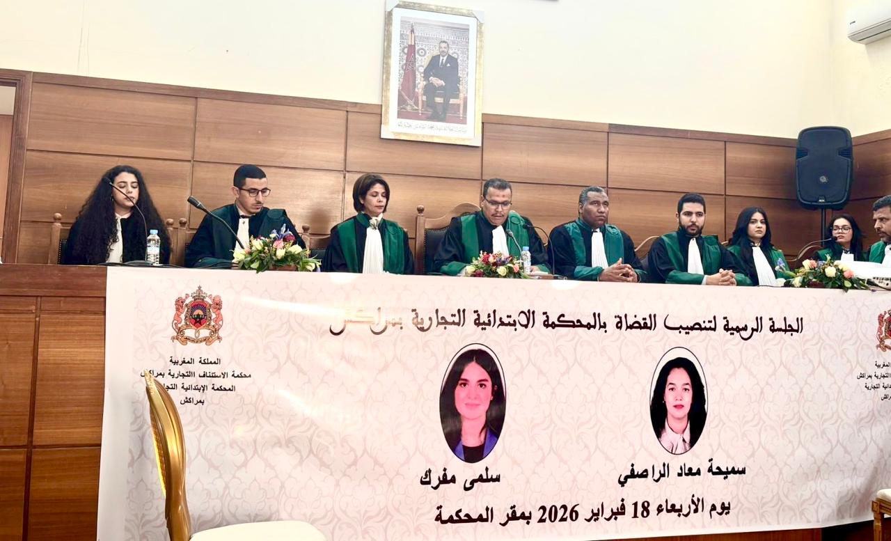 إحتضنت المحكمة الابتدائية التجارية بمراكش، يوم الأربعاء 18 فبراير 2026، جلسة رسمية خُصصت لتنصيب قاضيتين جديدتين، وذلك في إطار تعزيز الموارد البشرية وتدعيم النجاعة القضائية بهذه المؤسسة.