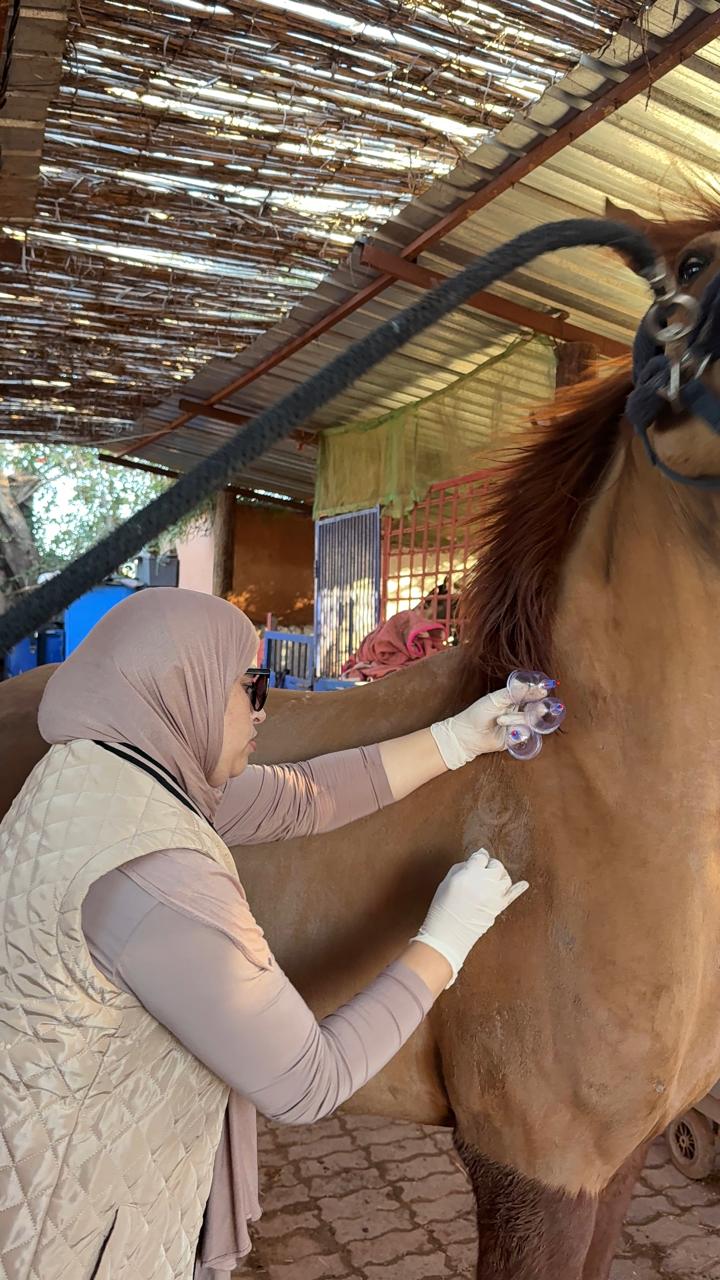ومن بين فوائدها أيضًا، المساعدة على الاسترخاء وتقليل التوتر، حيث تساعد الحجامة على تهدئة الجهاز العصبي للحصان، مما يجعله أكثر توازنًا وهدوءًا. كما تساهم في تسريع عملية التعافي بعد الإجهاد أو الإصابات الخفيفة، من خلال تحفيز الجسم على التخلص من السموم وتحسين وظائفه الحيوية، وهو ما يجعلها خيارًا مكملاً للعلاجات البيطرية الحديثة.