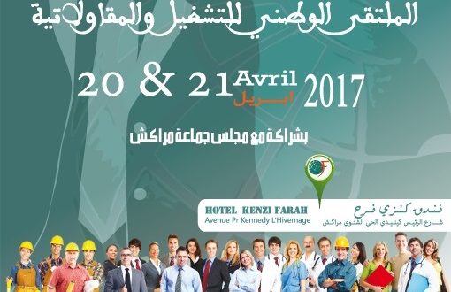 في إطار تفعيل التفكير والفعل المقاولاتي ومرافقة الشباب في سوق الشغل، تنظم جمعية “أجيال مراكش” و تحت إشراف وزارة الشغلالنسخة الثالثة للمعرض الوطني للتشغيل والمقاولاتية بمراكش يومي 20 و 21 أبريل 2017 تحت شعار “أي منظور للتشغيل والمقاولاتية للمساهمة في مسيرة المغرب“،