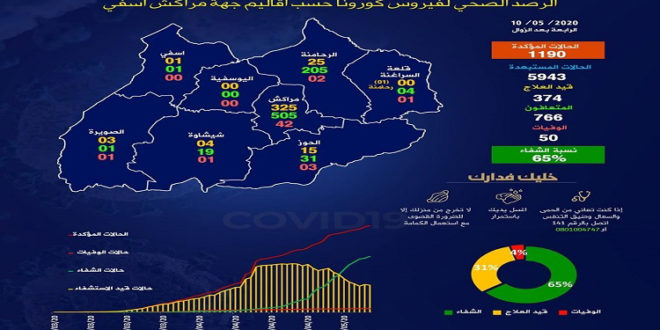 وتخضع للعلاج أيضا، ثلاث حالات بالصويرة وحالة واحدة بآسفي، في حين ظل إقليم اليوسفية خاليا من أية إصابة منذ ظهور الوباء بالجهة.