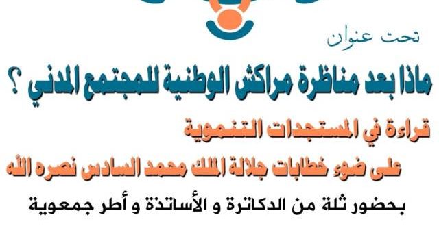 عقدت فعاليات المجتمع المدني الممثلة للمناظرة الجهوية بجهة مراكش أسفي مساء أمس السبت بمقر غرفة التجارة والصناعة والخدمات لقاءا تواصليا موسعا حول المستجدات التنموية بجهة مراكش أسفي على ضوء الخطب الملكية السامية
