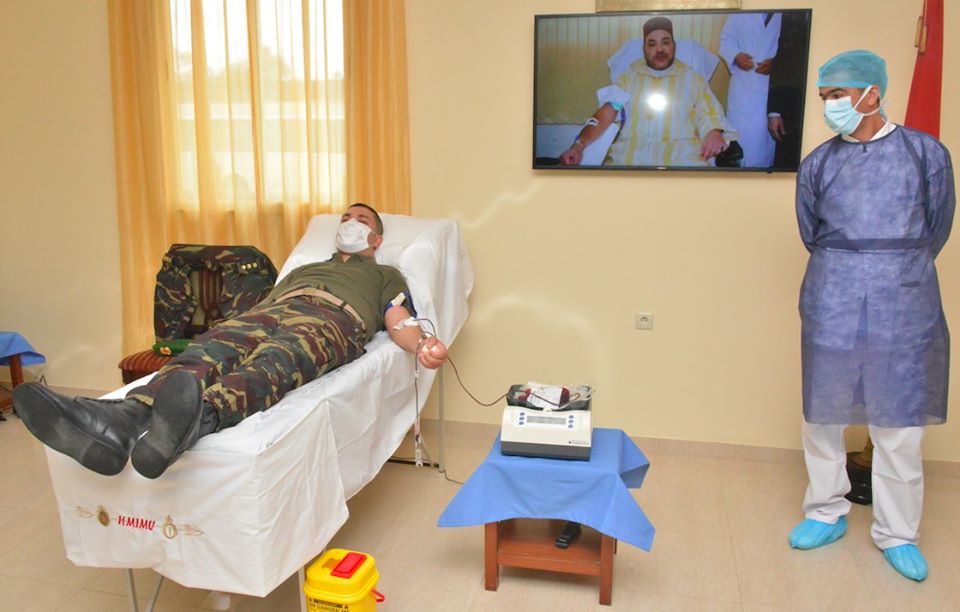 وفي هذا الإطار  إنخرطت مفتشية الصحة العسكرية في برنامج مكثف إنطلق يوم 2 أبريل الجاري  حيث تجوب وحدة طبية متنقلة تحت إشراف فريق طبي مختص مختلف وحدات القوات المسلحة الملكية البرية , منها والجوية والبخرية وذلك بهدف  جمع تبرعات أفراد القوات المسلحة الملكية من هذه المادة الحيوية .