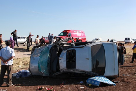 شهدت الطريق الوطنية الرابطة بين مدينتي الزمامرة وآسفي، صباح العيد وتحديدا بتراب جماعة الحكاكشة، بإقليم سيدي بنور، حادثة سير مميتة، خلفت مصرع تسعة أشخاص على الفور، فيما أصيب ثلاثة آخرون بجروح وكسور وُصفت بالخطيرة، إثر اصطدام ثلاثي بين سيارتين رباعيتي الدفع، وسيارة أخرى لنقل البضائع.