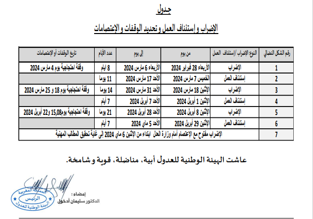 الهيئة الوطنية للعدول تعلن عن جدول الإضراب وإستئناف العمل من 28 فبراير إلى 5 ماي