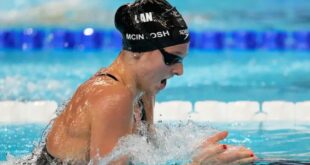 تمكنت السباحة الكندية سامر ماكنتوش من تحطيم الرقم القياسي العالمي في سباق 400 متر حرة، مسج...