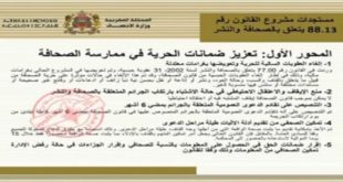 مشروع القانون 77-71 القاضي ... 21 مارس، 2018 0 تقديم مشروع القانون رقم 17-71 يقضي بتغيير وتتميم القانون رقم 13-88 المتعلق بالصحافة والنش... أكمل القراءة »